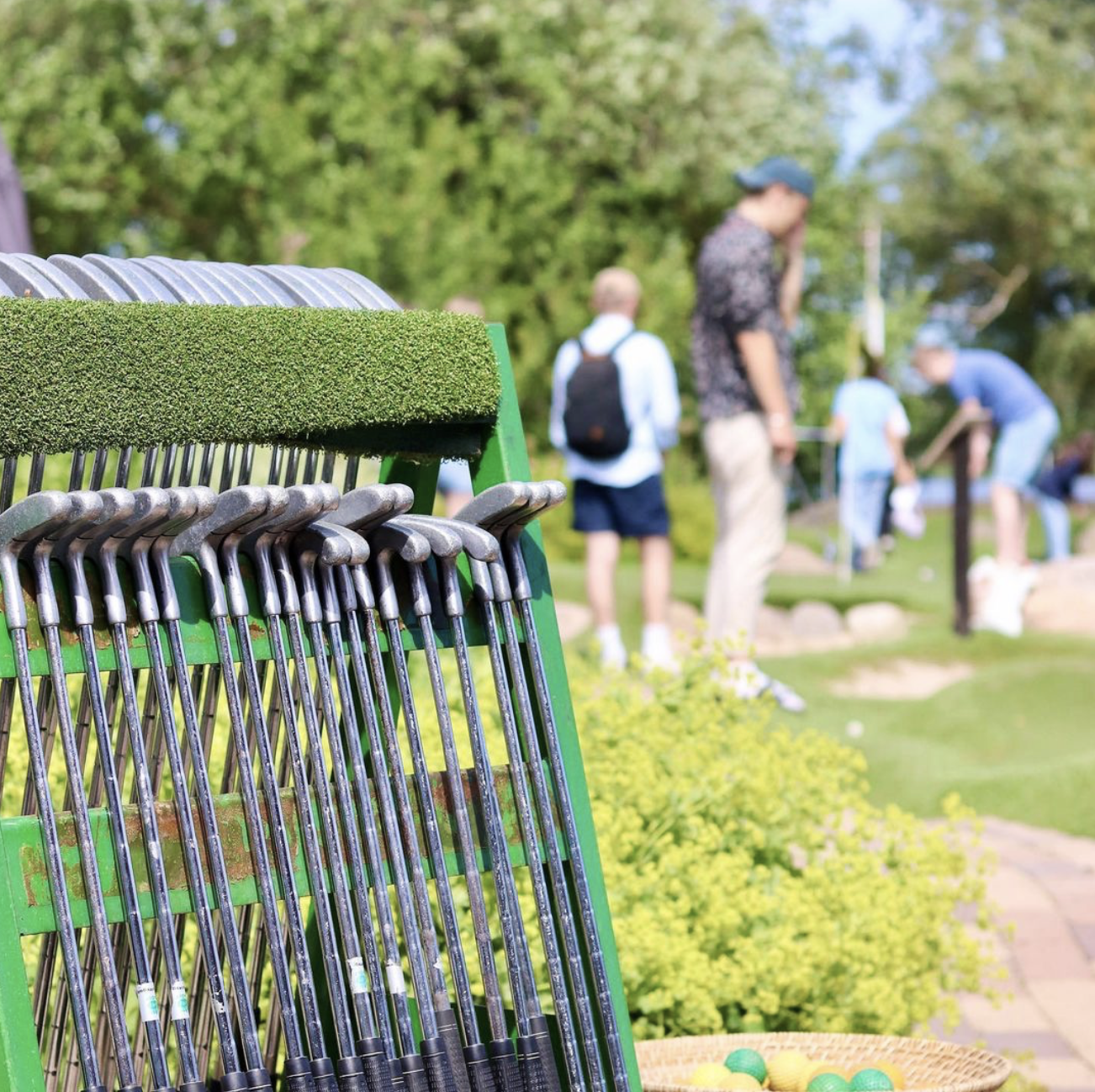 Här kan du vistas under en lång säsong. Vi har en 18-hålsbana I konstgräs som kan spelas i 2 olika slingor, grön eller röd var för sig eller alla 18 om andan faller på!