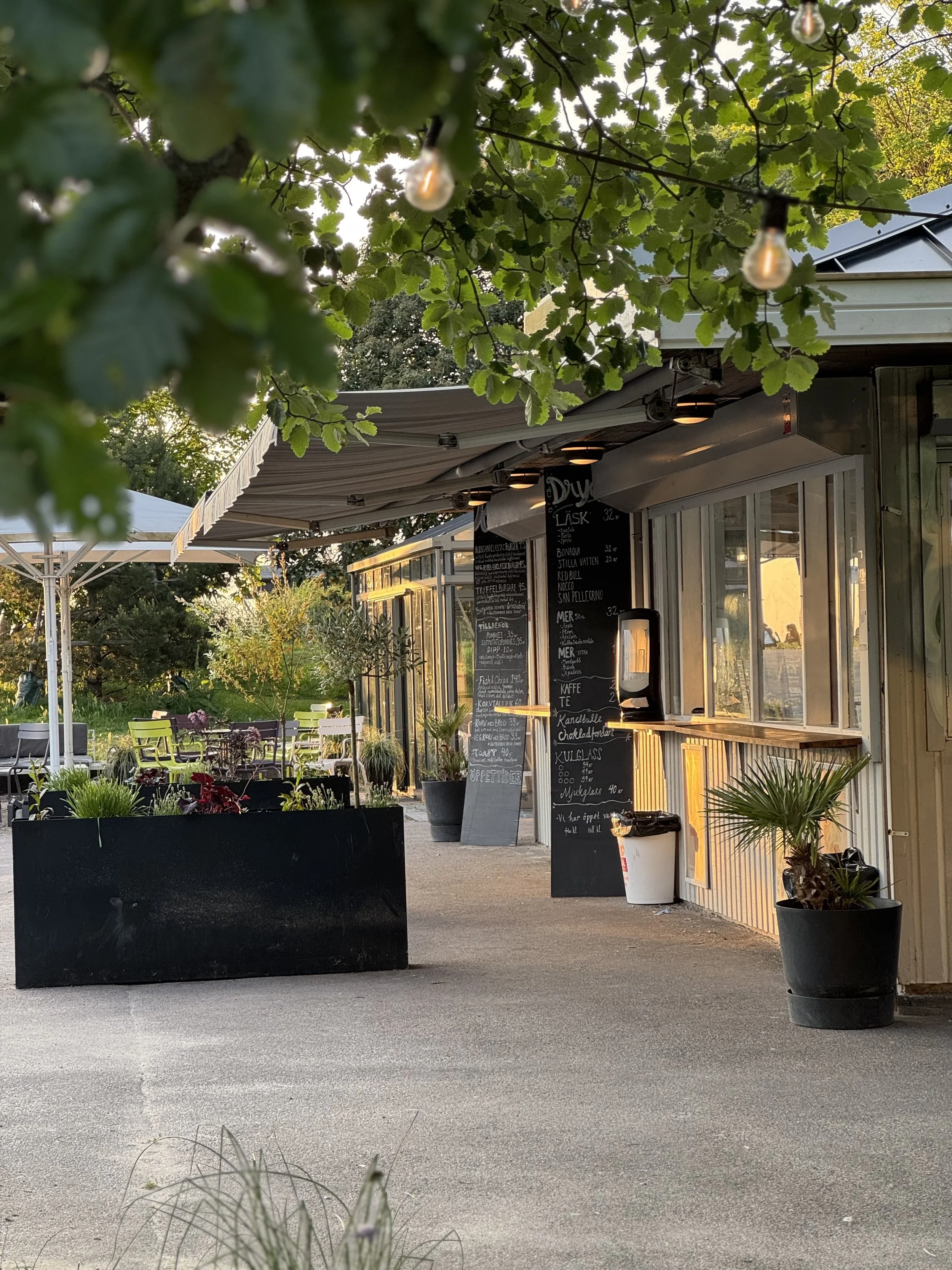 Fika, mat, glass & dryck säljes separat i kiosken.